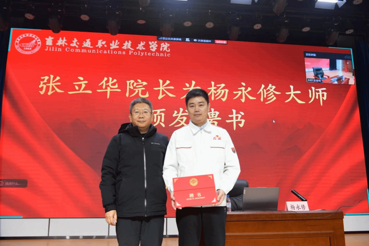 报告会前,院长张立华为杨永修大师颁发“睿思”讲堂特聘教授聘书,正式聘请这位深耕汽车精密制造领域的大国工匠,为学院对接产业需求、培育高素质技能人才提供专业指导。