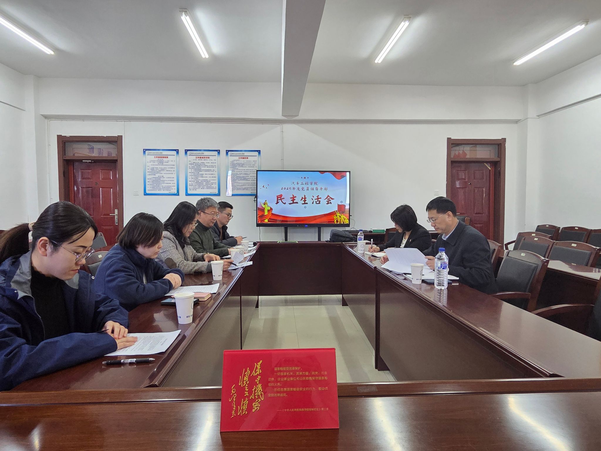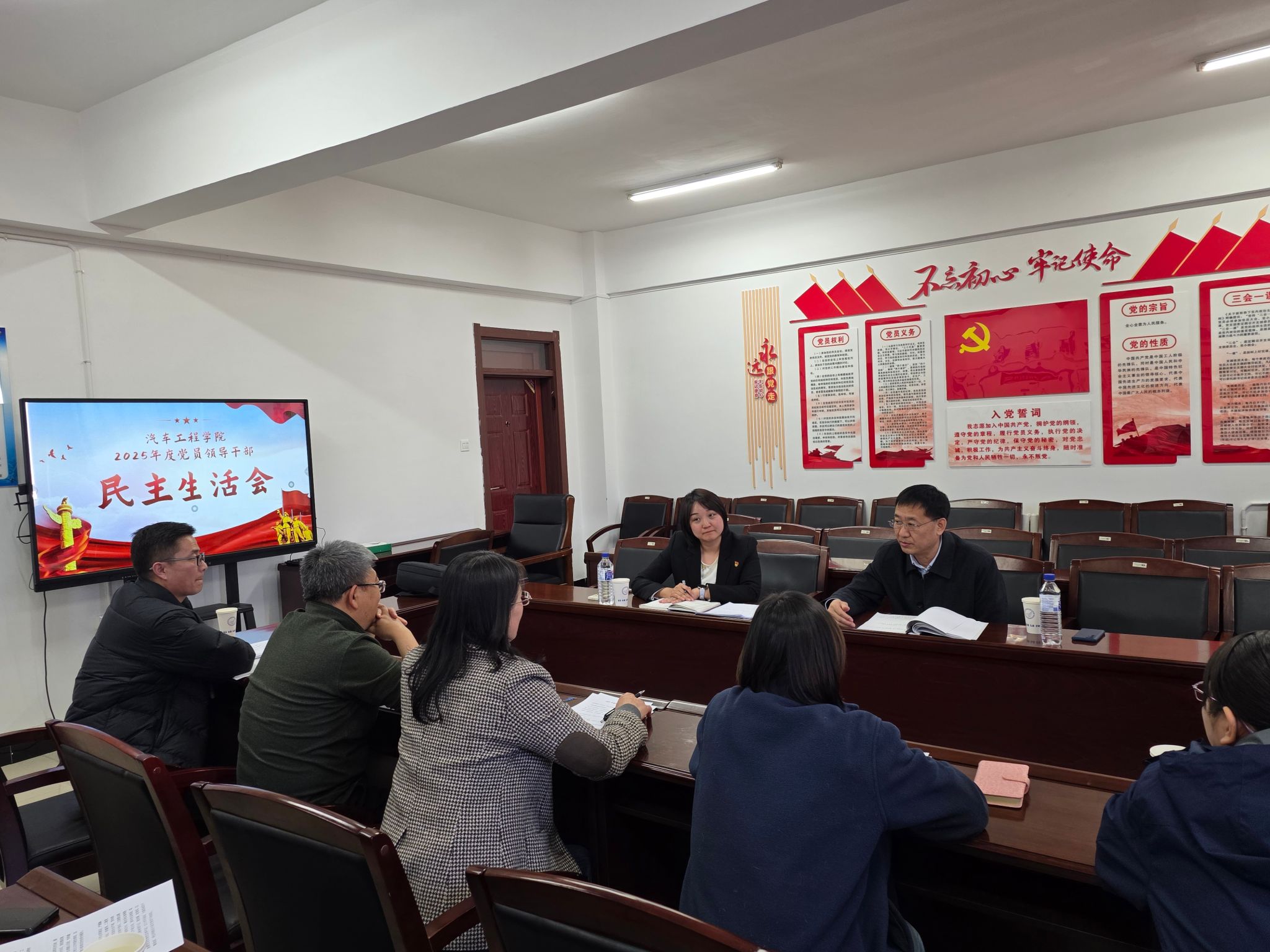 为深入学习贯彻习近平新时代中国特色社会主义思想,贯彻落实党的二十届四中全会精神,以打好攻坚战、持久战的决心和恒心,锲而不舍落实中央八项规定精神,推进作风建设常态化长效化,以优良作风凝心聚力、真抓实干,奋力开创中国式现代化建设新局面,3月6日上午,汽车工程学院在党员活动室召开了2025年度民主生活会。学校马凯副院长、党委组织部副部长闫冬凌到会指导,汽车工程学院党总支书记崔秀虹主持会议,学院张立华院长、孙莹副书记、蔚佳彤副院长、张井柱副院长参加会议。