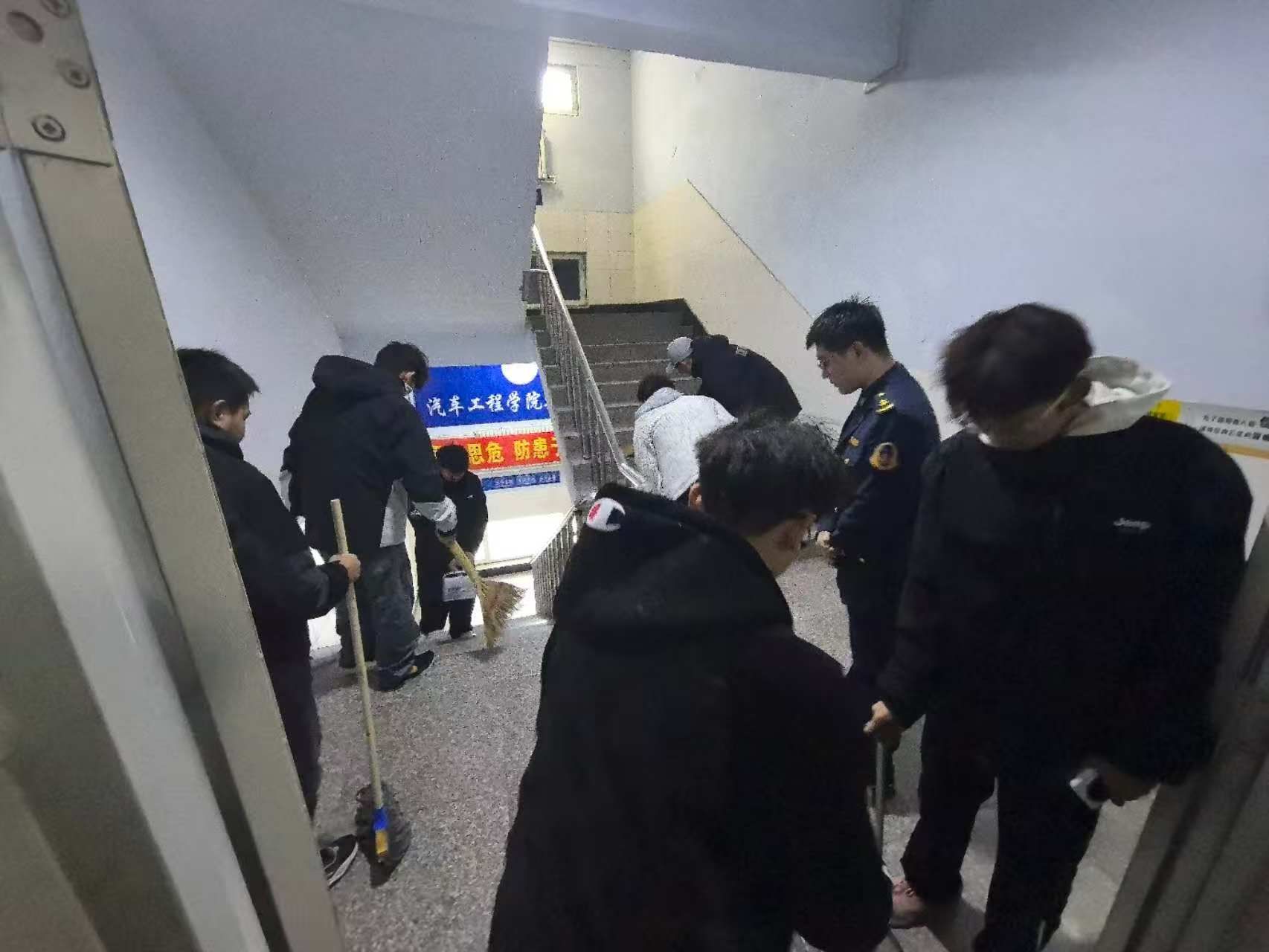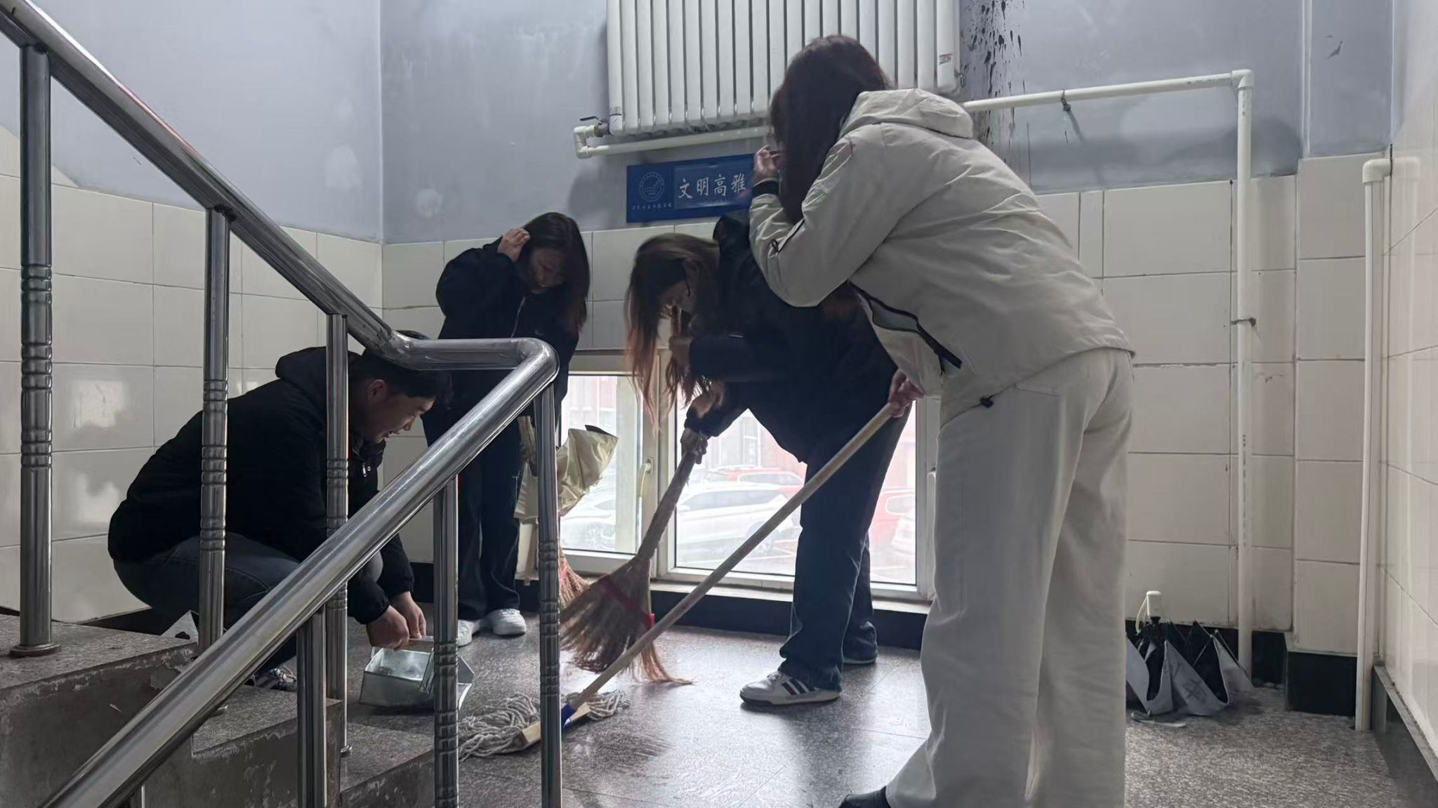 活动当日,青马学子们手持扫帚、簸箕等工具,分工明确、协作有序,对弘毅楼的楼梯区域进行了细致清扫。他们不放过任何一处角落,认真清理着灰尘、杂物,用双手让楼梯环境焕然一新。在清扫过程中,学子们展现出了不怕脏、不怕累的奉献精神,每一次弯腰、每一次清扫,都彰显着他们对校园环境的珍视与爱护。