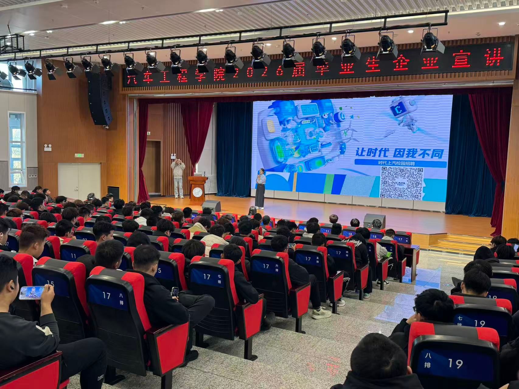 宣讲会现场设置互动答疑与简历投递专区,学生就岗位要求、实习机会、职业发展路径等问题踊跃提问,企业代表逐一详细解答,现场气氛活跃。多名学生表示,通过此次宣讲,对新能源行业发展趋势和时代上汽的岗位需求有了更深入的了解,也进一步明确了自己的职业规划。