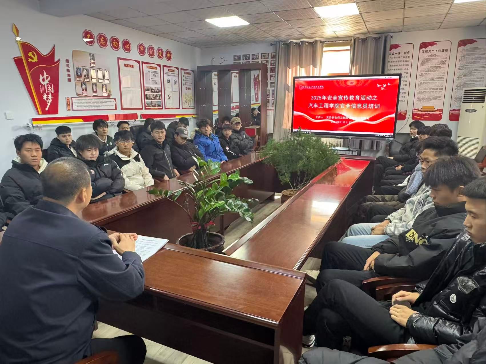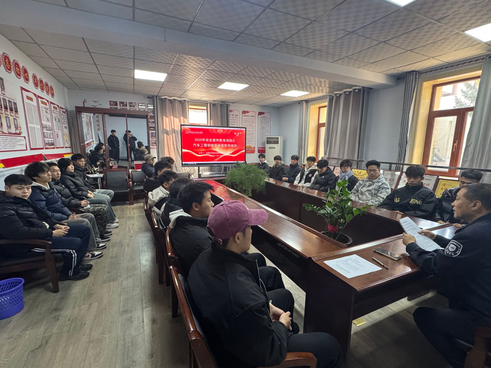 为完善学院安全防控体系,提升学生自我管理与互助能力,汽车工程学院顺利开展2025届安全信息员的系统培训工作,正式肩负起维护校园安全的重要职责。本次培训中,学校保卫处专业教师结合高校真实案例,深入地讲解了消防安全重点、防范电信网络诈骗要点以及实验室安全规范等核心知识,为信息员们夯实了理论基础。