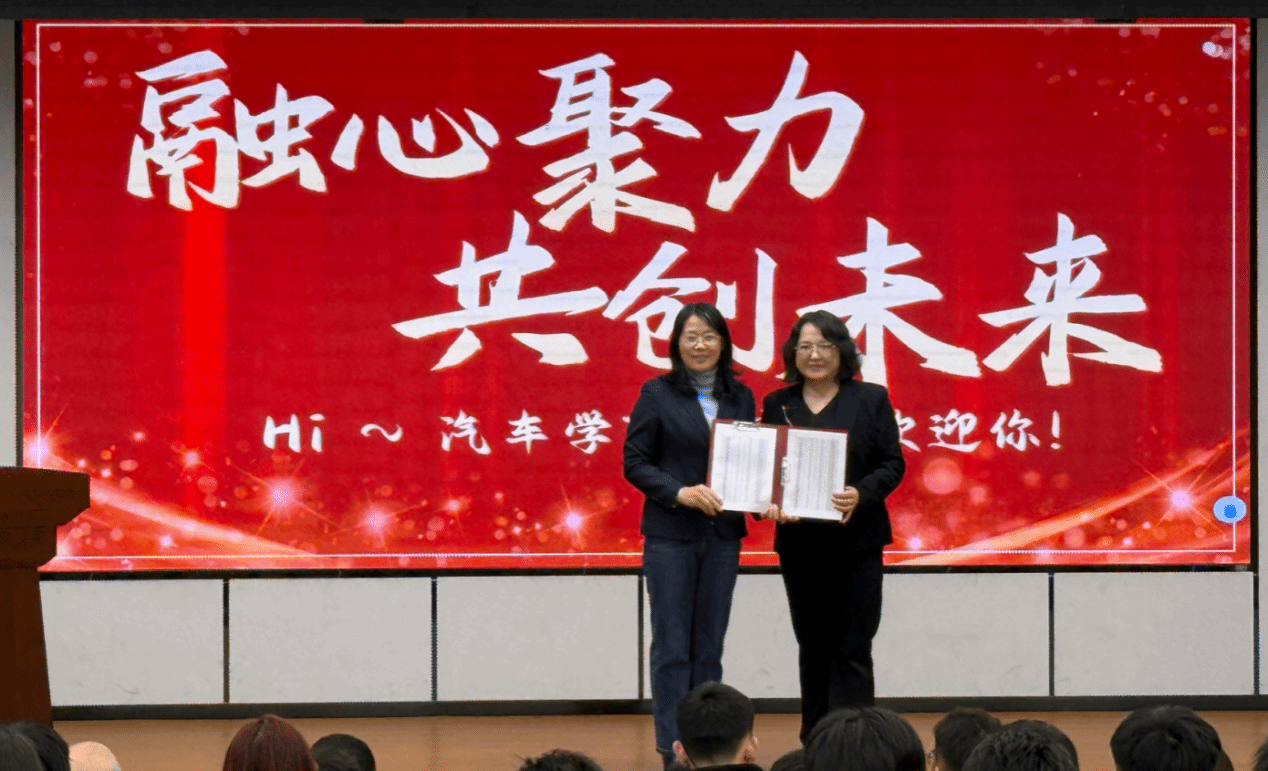 欢迎仪式上,张福霞书记将记录着每一位同学姓名、满载着成长期许的《学生名册》,郑重交予崔秀虹书记手中。本次交接不仅承载着学院对每一位学子成长成才的深切期许,更是育人初心的延续与匠心薪火的传承。同学们在这场有温度的仪式中,真切感受到了汽车工程学院大家庭的归属感与向心力。